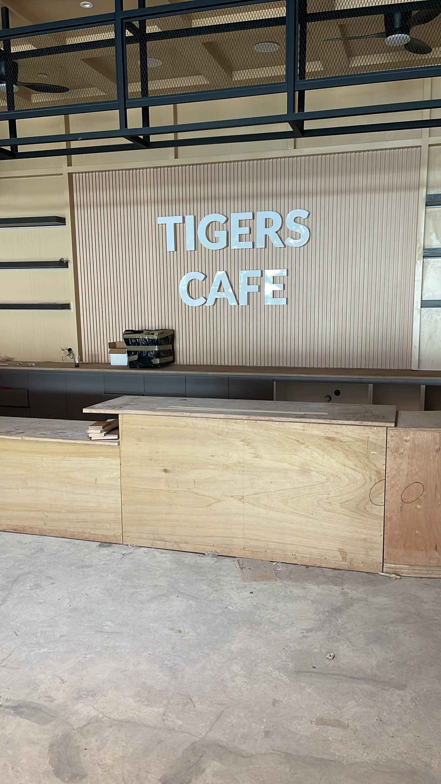 At the entrance, paving work is underway to ensure smooth access for all vehicle types and the reception area is now fitted with its new interiors, ready to offer a warm welcome to parents, students, and guests. Inside the gymnasium and auditorium, air conditioning systems are being tested to provide comfort for sports, assemblies, and community events. Meanwhile, the Tigers Café is taking shape and will soon be a lively space for our community to connect.