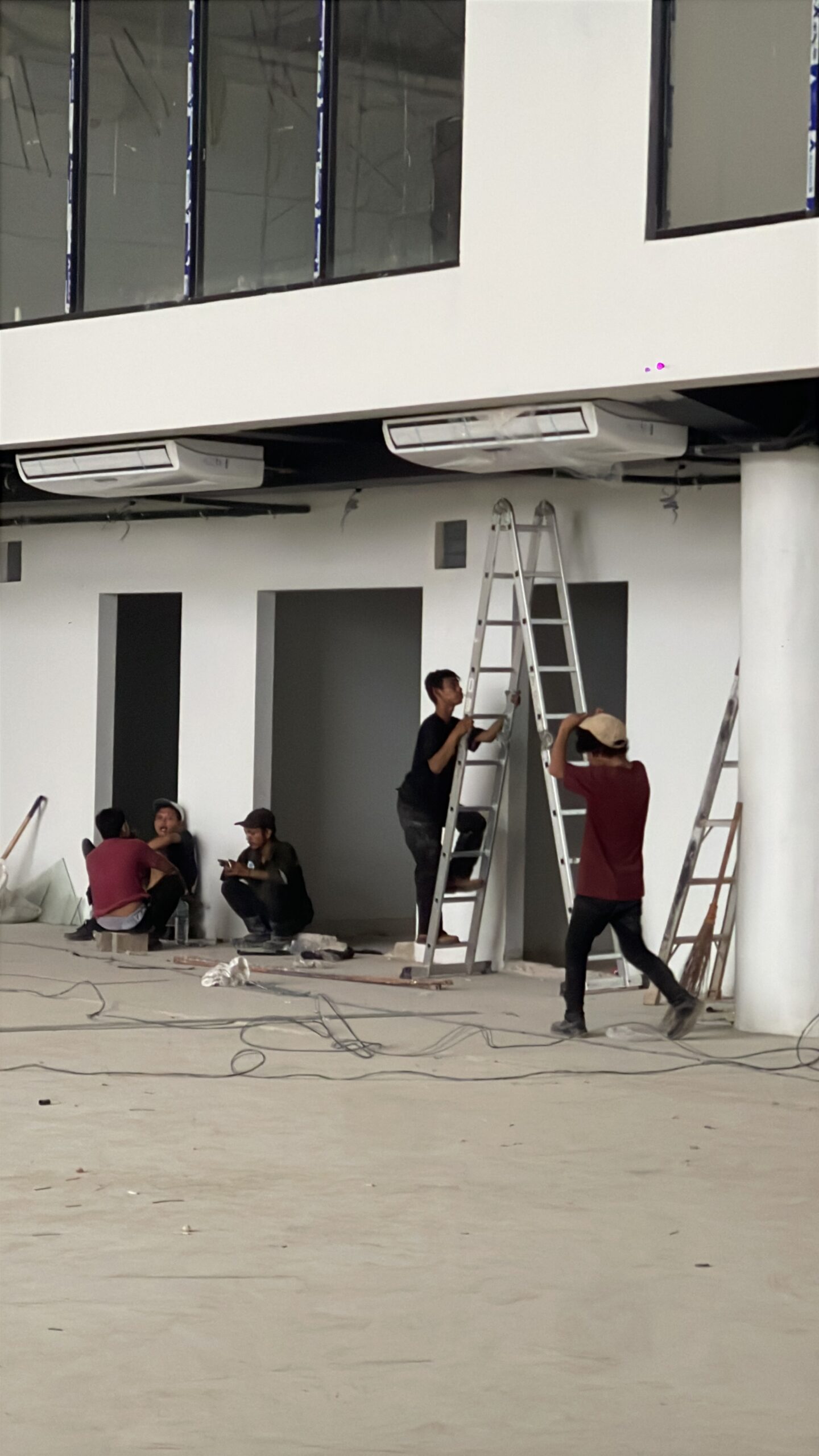 As we step into February, we’re making great strides in the construction of our new school building. Our team is currently clearing out debris and construction waste to prepare for the next phase—bringing the interior to life! We are preparing to level our floors, to install air-conditioning units, to install our vinyl floorings, and to install lights in the classrooms. We will begin installations starting next week. We will work starting from the second floor first! In addition, our gymnasium roofing have finally arrived and we are in the process of carefully installing them using heavy machineries.