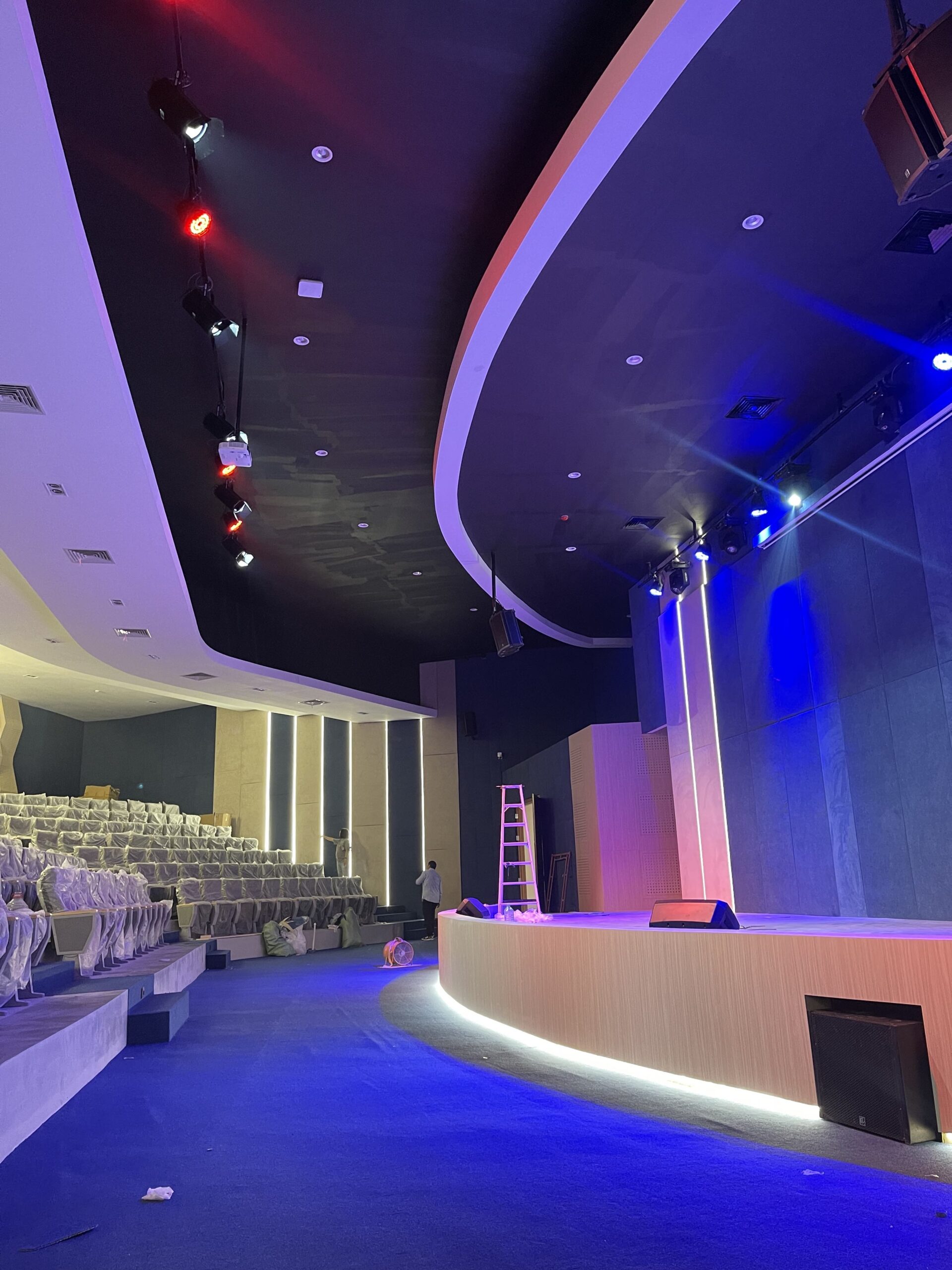 One of the highlights this month is the work on our state-of-the-art auditorium. Three specialized vendors are currently onsite, focusing on the bleachers and stage, ceiling installation, and sound and visual systems. They are working in harmony to meet our deadline, with interior finishing and soundproofing scheduled to begin by the end of the month.